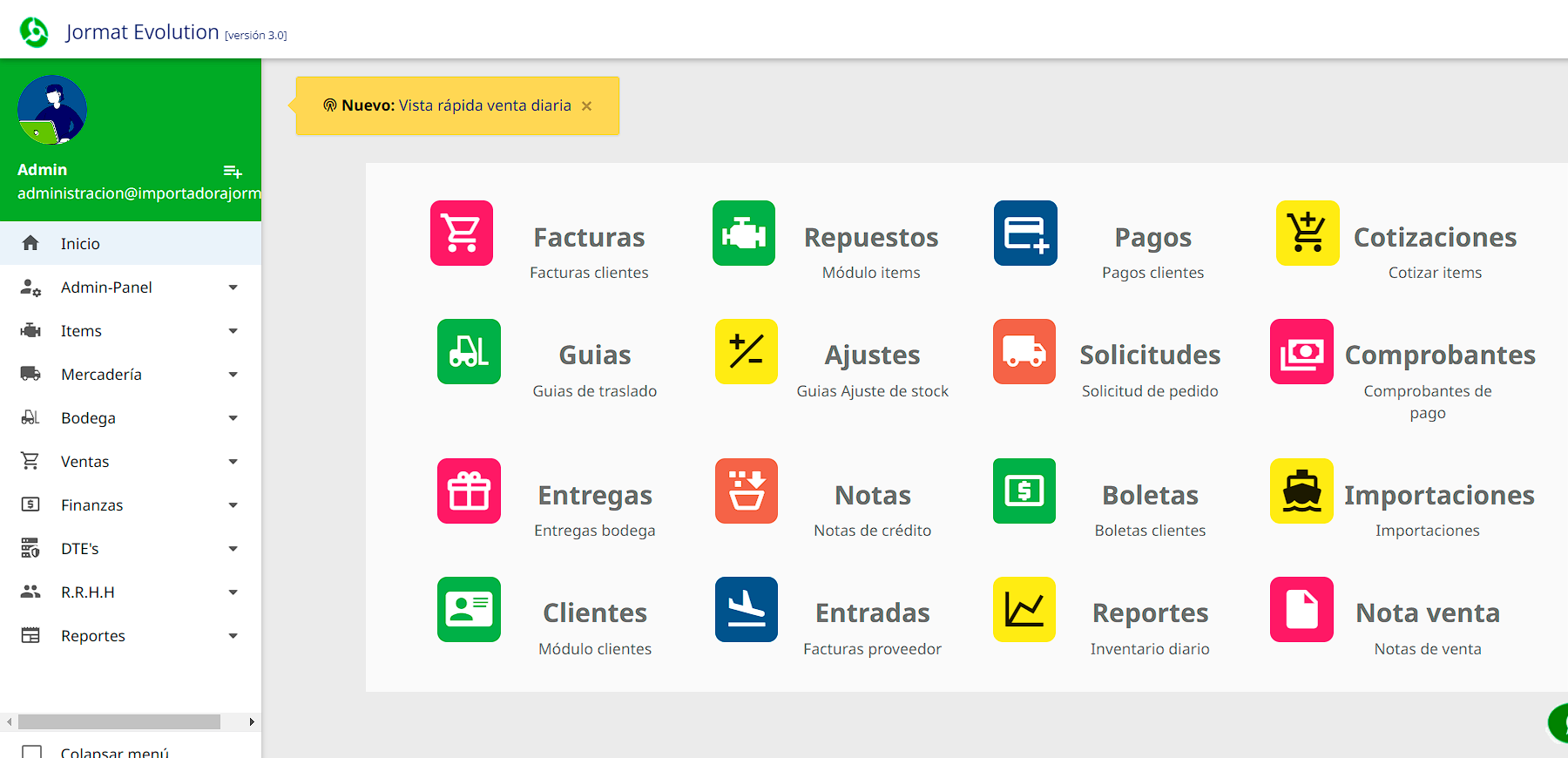 SYSCODE desarrolló Jormat Evolution, un sistema ERP en la nube diseñado para centralizar la gestión comercial, financiera y logística de la empresa Importadora Jormat.